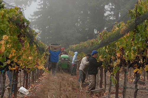 シャルドネの畑は、カリフォルニアでは珍しく灌漑をしない畑である。灌漑しない畑の方がブドウは深く根をはるという。その中でも自然と収量が制限され、凝縮したブドウが得られるため、高樹齢の畑のブドウが好んで使われている。