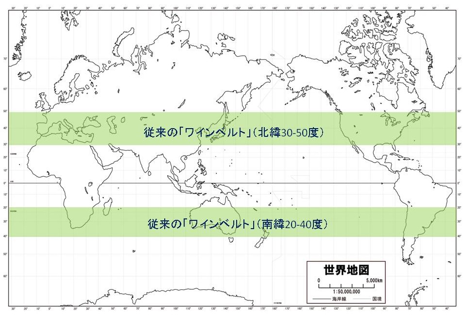 この「ワインベルト」等と呼ばれる緯度帯、