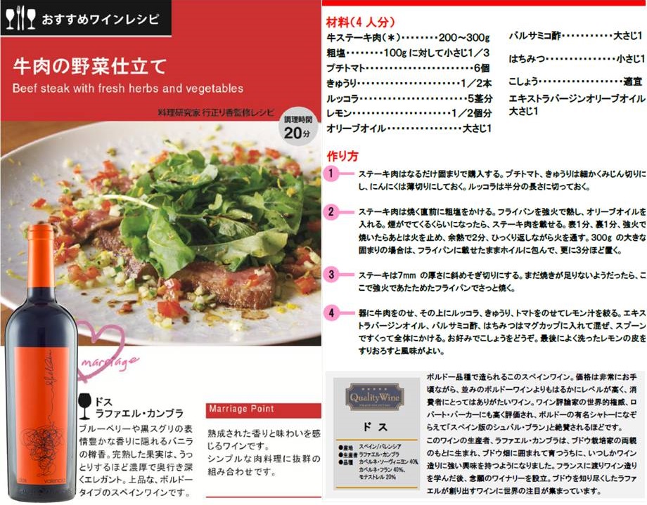 ワイン1本1本に、家で簡単に作れるマリアージュレシピをご提案していますよ!